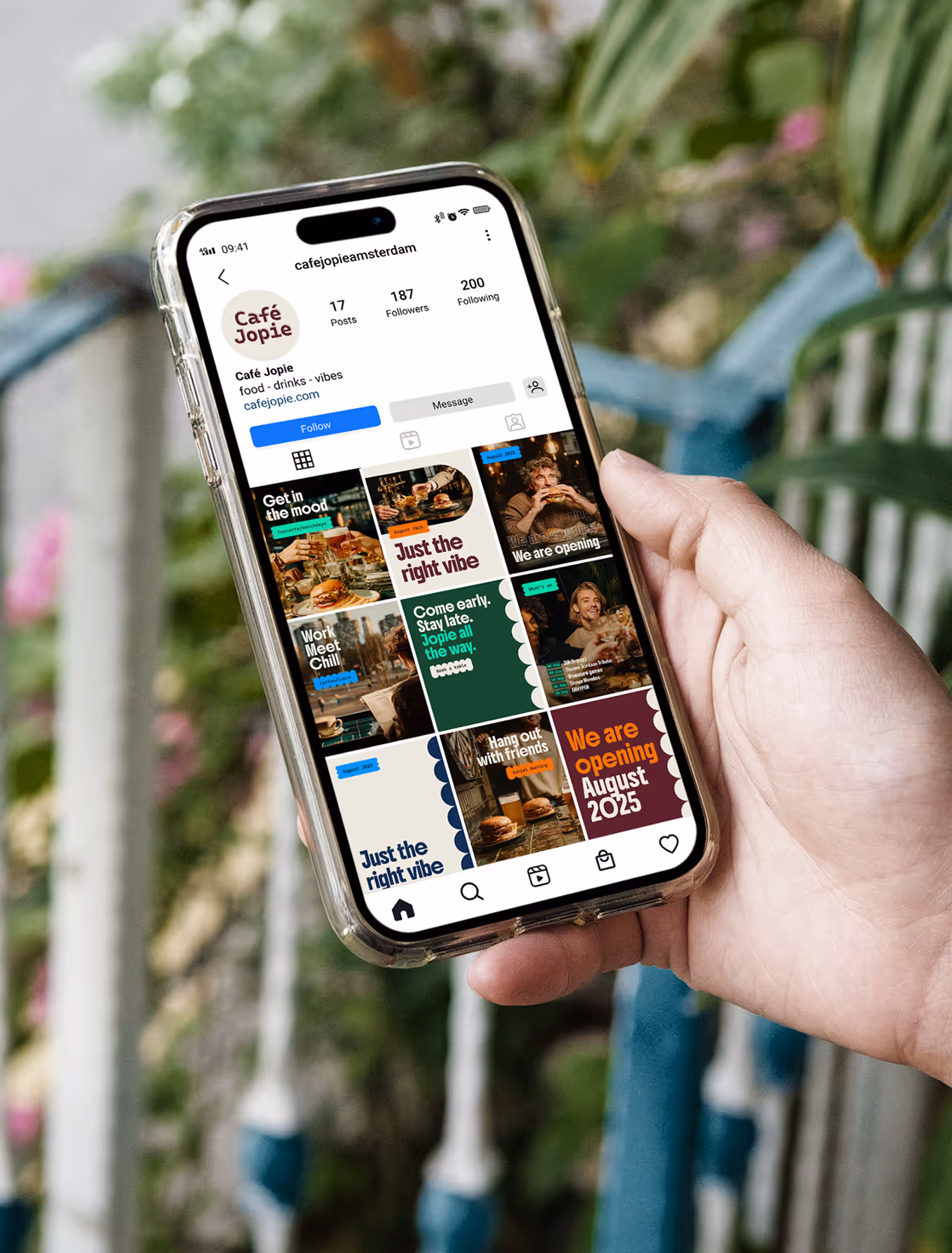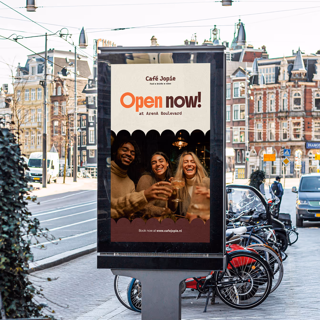 Met onze fullservice aanpak gaan we niet alleen voor positionering, branding en website maar richten we ook alle kanalen in: Google, Meta, Tripadvisor en Maps. De campagnes spreken verschillende doelgroepen aan, van zakelijke gasten tot concertgangers. Ook in de omgeving is Café Jopie goed te vinden: dankzij outdoor signing en een gastvrij team weten vriendengroepen, collega’s en fans de weg naar het café te vinden.